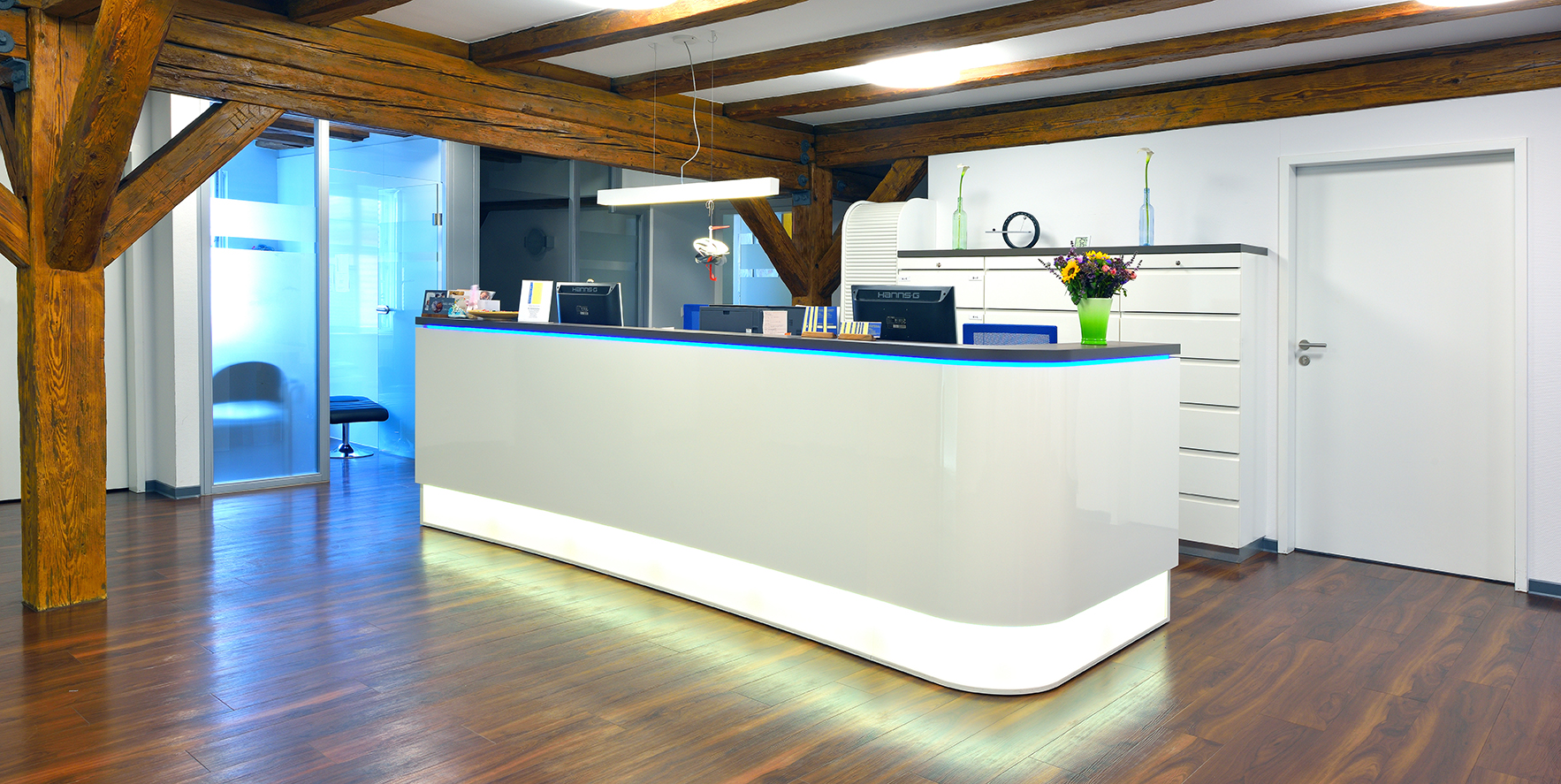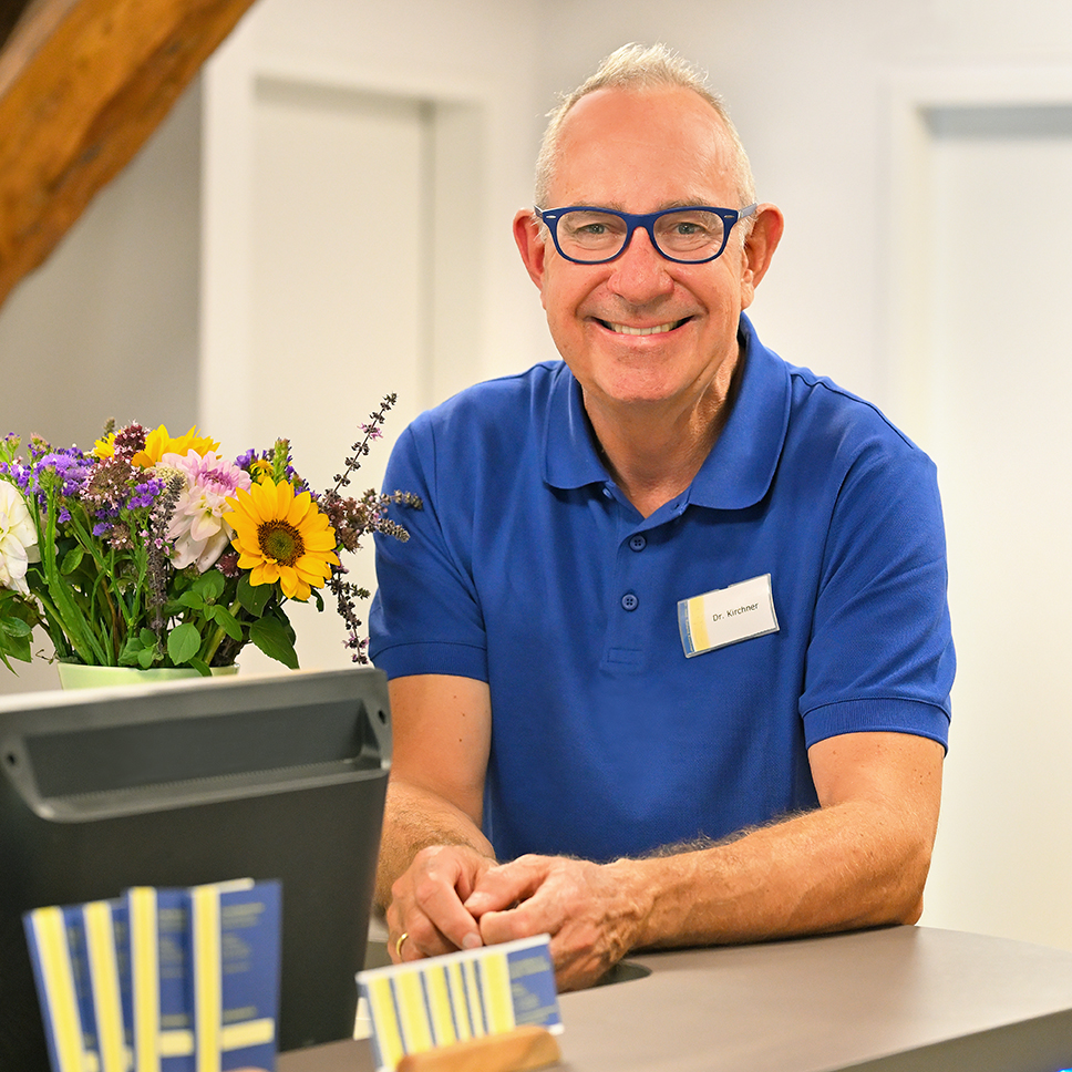 Die vier Infofelder Kontakt, Termine, Sprechzeiten und Aktuelles, können bei Bedarf auf drei reduziert werden, um eine präzisere und fokussiertere Darstellung zu ermöglichen.